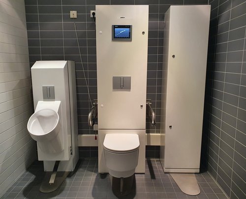 Das neu installierte Toilettensystem setzt genau an diesem Punkt an: Patientinnen und Patienten werden nach einer Kontrastmittelgabe gebeten, die hierfür vorgesehene und speziell gekennzeichnete Toilette vor der Radiologie zu nutzen. Das System ist als regulärer, barrierearmer WC-Raum ausgeführt und verfügt sowohl über eine Sitztoilette als auch über ein Urinal. Für Patientinnen und Patienten ergibt sich kein Unterschied in der Nutzung gegenüber einer herkömmlichen Sanitäreinrichtung.