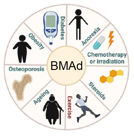 Bone marrow adipocytes (BMAd), once believed to lack specific function, are increasingly recognized as important regulators of hematopoiesis (Zinngrebe J. et al., Leukemia, 2020). Today, we know that BMAd - similar to adipocytes in white adipose tissue depots - store energy and secrete important signaling molecules. BMAd exhibit remarkable plasticity and form in response to various external stimuli, such as steroids, obesity, or during aging and under anti-leukemic therapy. The intricate interplay between BMAd and other cells in the bone marrow microenvironment remains incompletely understood. Therefore, we study BMAd under different physiological and pathological conditions by state-of-the-art sequencing techniques to elucidate previously unknown interaction routes between adipocytes and cells of the hematopoietic system.