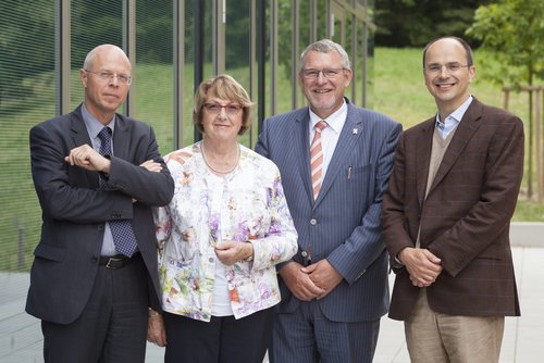 Das unten angehängte Foto zeigt von links: Prof. Dr. Dr. Klaus M. Beier (Initiator des Präventionsnetzwerks „Kein Täter werden“, Charité –Universitätsmedizin Berlin), Barbara Schäfer-Wiegand (Vorsitzende der Stiftung „Hänsel + Gretel“ und Sozialministerin a. D.), Prof. Dr. Jörg M. Fegert (Ärztlicher Direktor der Klinik für Kinder- und Jugendpsychiatrie/Psychotherapie, Universitätsklinikum Ulm), Prof. Dr. Harald Gündel (Ärztlicher Direktor der Klinik für Psychosomatische Medizin und Psychotherapie, Universitätsklinikum Ulm). (Foto: Universitätsklinikum Ulm)