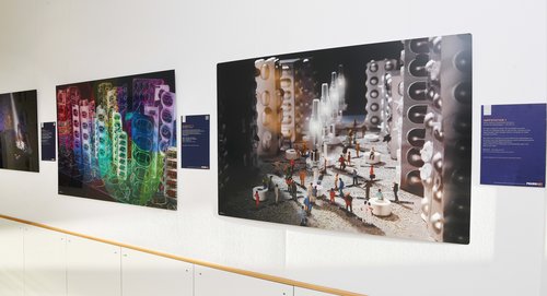 Neben den Photographien von Martina Dach, die menschlichen Situationen im Klinikalltag festhalten, zeigt das Künstlerkollektiv DRAW (Dr. Dorian Recker, Andreas Willems) ihre sensibilisierenden und zum Nachdenken anregenden "PharmArt"-Collagen aus Medikamenten und Blistern. Die Exponate stehen für eine kritische und zugleich künstlerische Auseinandersetzung mit dem Wert Pharmazie.