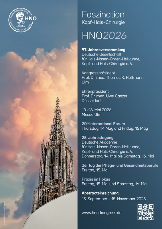 Vom 13. bis 16. Mai 2026 trifft sich die Fachwelt der Hals-Nasen-Ohren-Heilkunde, Kopf- und Hals-Chirurgie erstmals in der schwäbischen Doppelstadt an der Donau. Unter dem Motto "Faszination Kopf-Hals-Chirurgie" erwartet die Teilnehmenden ein hochkarätiges Programm unter anderen zu chirurgischen Innovationen, Ambulantisierung, Robotik und KI - ergänzt durch praxisorientierte Kurse, interaktive Formate und eine große Industrieausstellung.