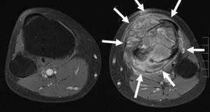 Dabei reicht das Methodenspektrum von minimalinvasiven Techniken über Resektionen bis hin zu Rekonstruktionen durch spezielle Tumorendoprothesen (s. Abb.). In seltenen Fällen kann bei bösartigen Tumoren auch eine Amputation notwendig sein. Zu erwähnen sind auch gutartige Veränderungen, die einem Tumor oder einer Tumor-ähnlichen Läsion entsprechen, und nicht therapiebedürftig sind (z. B. das sog. nicht-ossifizierende Fibrom).