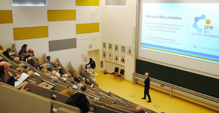 Das Zentrum für Personalisierte Medizin Ulm (ZPMU), unter der ärztlichen Leitung von Prof. Dr. med. Thomas Seufferlein und das Comprehensive Cancer Center Ulm (CCCU), unter der ärztlichen Leitung von Prof. Dr. med. Stephan Stilgenbauer haben am Donnerstag, 25. September 2025 zu einer gemeinsamen Informationsveranstaltung für Patienten, deren Angehörige und alle Interessierte eingeladen.