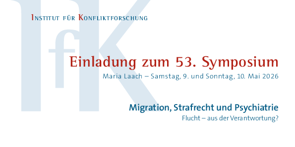 Am 9. und 10. Mai 2026 findet im Seehotel Maria Laach das 53. Symposium des Instituts für Konfliktforschung in Kooperation mit dem Verein Deutsche Strafverteidiger e.V. statt. Die interdisziplinäre Tagung widmet sich dem Spannungsfeld von Migration, Strafrecht und Psychiatrie und bringt Expertinnen und Experten aus Rechtswissenschaft, Kriminologie, forensischer Psychiatrie und Migrationsrecht zusammen. Thematisch reicht das Programm von der sogenannten Ausländerkriminalität über Traumafolgen bei Geflüchteten und Kultursensitivität in der Kriminalprognostik bis hin zu den Wechselwirkungen zwischen Straf- und Ausländerrecht.