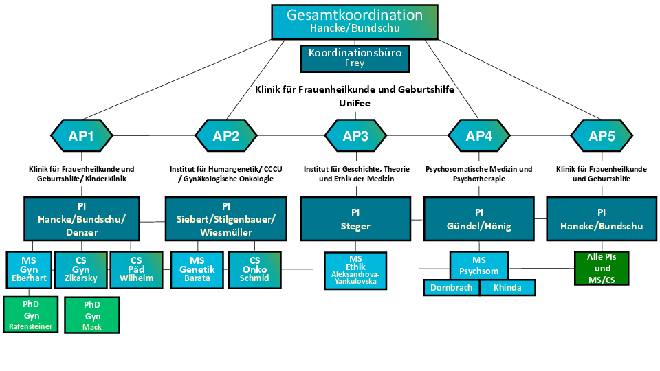 Die Gesamtkoordination erfolgt durch Frau Prof. Dr. Katharina Hancke und Frau PD Dr. Dr. Karin Bundschu über das langjährig erfolgreich bestehende und stetig wachsende Kinderwunschzentrum UniFee der Klinik für Frauenheilkunde und Geburtsmedizin (Ärztlicher Direktor: Prof. Dr. Wolfgang Janni) am Universitätsklinikum Ulm.