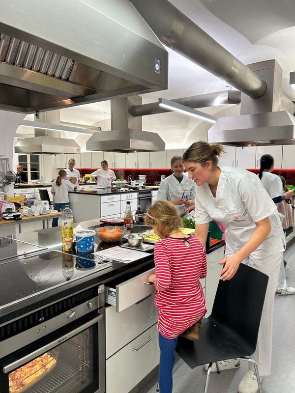 Im Rahmen des Jubiläums realisierte die Schule für Diätassistenz verschiedenste Aktivitäten – von praktischen Kochkursen für Mitarbeitende über interaktive Ernährungsprojekte mit Jugendlichen und Schulkindern bis hin zu speziellen Schulungen für Menschen mit besonderen Ernährungsbedürfnissen. Dazu zählten Kochabende für Kinder mit Zöliakie sowie Ernährungstrainings mit Blick auf moderne Ernährungstrends. Mit viel Engagement brachten Auszubildende und Lehrkräfte ihr fachliches Wissen kreativ und alltagsnah ein. Sichtbar wurde dies unter anderem bei der Aktion „Advent trifft Zöliakie“ sowie bei den zahlreichen Live-Kochshows am Tag der offenen Tür. Unter dem Motto „Powerfood für die Winterzeit“ erhielten dabei mehrere hundert Besuchende anschauliche Einblicke in die vielseitige Arbeit der Diätassistent*innen. Ein besonderes Highlight stellte das Jubiläumstreffen der Praxisanleiter*innen im Sommer dar: Praxispartner*innen aus Kliniken, Altenpflegeeinrichtungen und anderen Gesundheitsbereichen kamen zusammen, um auf vier Jahrzehnte erfolgreicher Zusammenarbeit zurückzublicken und neue Impulse für die Zukunft zu setzen.