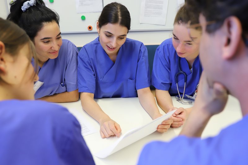 „Der Umgang mit kranken Kindern und Jugendlichen sowie die Betreuung der Eltern kann herausfordernd sein und erfordert ein hohes Maß an Abstimmung und feinfühliger Kommunikation“, erklärt Prof. Dr. Sebastian Bode, Leitender Oberarzt an der Kinderklinik und Projektverantwortlicher. „Besonders in der Pädiatrie zeigt die interprofessionelle Vernetzung ihre Stärke: Durch die praktischen Einblicke, die direkte Umsetzung und das eigenverantwortliche Handeln unter ständiger Begleitung können Berührungsängste oder Unsicherheiten so früh wie möglich vermieden beziehungsweise rechtzeitig bewältigt werden“. Die Teilnehmenden profitieren dabei von theoretischen Inputs, Peer-Teachings, unmittelbarem Feedback und der Möglichkeit, Verantwortung zu übernehmen – alles unter engmaschiger, individueller Supervision. „Unser Ziel ist es, dass Studierende und Auszubildende direkt im Arbeitsumfeld von-, mit- und übereinander lernen und die Versorgung der Patientinnen und Patienten gemeinsam gestalten“, bringt Sara Schwer, stellvertretende Stationsleitung der Station KK2, die Grundidee auf den Punkt. Die Teilnehmenden wachsen so in ein Setting hinein, das fachliche Sicherheit, Teamgeist und Verantwortungsbewusstsein gleichermaßen fördert.