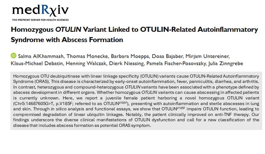 Linear ubiquitin chains play a crucial role in regulating inflammatory processes in the human body (Zinngrebe J. et al., EMBO Reports, 2014). These chains are assembled by the Linear UBiquitin chain Assembly Complex (LUBAC), which consists of SHARPIN, HOIL-1, and HOIP, and are specifically removed by the deubiquitinase OTULIN (OTU Deubiquitinase with LINear linkage specificity). Dysregulation of linear ubiquitination – e.g., due to mutations in LUBAC or OTULIN – can lead to severe autoinflammation and/or immunodeficiency in affected patients (Zinngrebe J. et al., EMBO Mol Med, 2022). Although adipose tissue is frequently affected, the underlying molecular mechanisms remain poorly understood. Gaining deeper insights into these processes may open up new therapeutic avenues for affected patients.