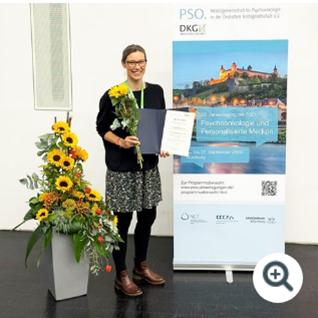 Dr. Daniela Bodschwinna, wissenschaftliche Mitarbeiterin der Klinik für Psychosomatische Medizin und Psychotherapie am UKU, mit PSO-Nachwuchswissenschaftspreis 2025 ausgezeichnet: Online-Intervention „Partner-CARE“ für Partner*innen von Krebspatient*innen erfolgreich prämiert. Folgen Sie dem Link..
