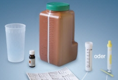 Werden mehr als 2,5 L gesammelt ist der Urin durch mehrmaliges Umschütten gegebenenfalls in ein drittes Gefäß zu mischen. geben Sie dem Patienten bitte ausreichend Sammelgefäße mit.
